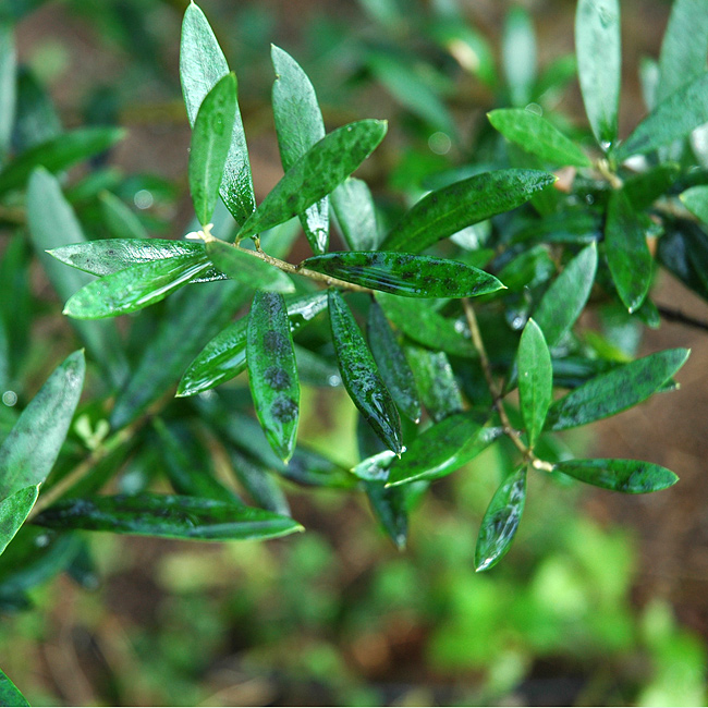 オリーブの手入れ ~黒ずんだネバディロブロンコの葉をきれいにする~