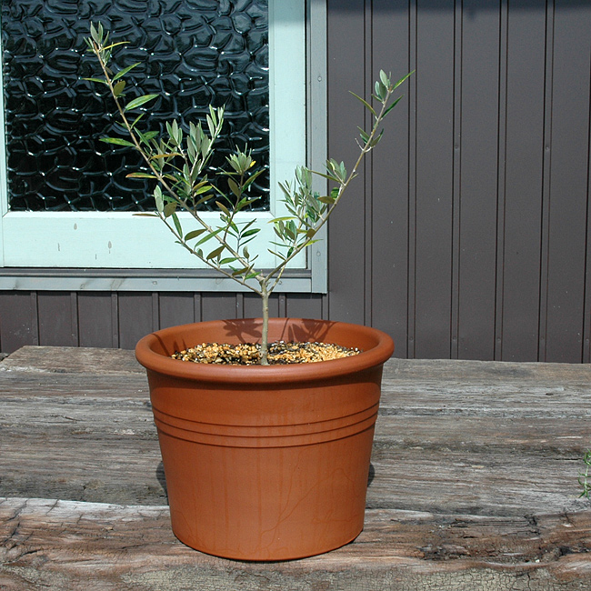 ポット苗で購入した、スペイン原産のオリーブの苗「ピクアル Picual」。